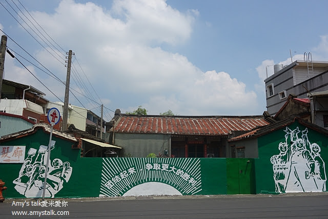 我們將導航設定在WGS84座標數值(X:120.272120,Y:23.147028),抵達位置約於村內代天府前,稍微將車子往前停,停車對面就有下面這面頗有五六零年代社會意識的綠色彩繪牆。